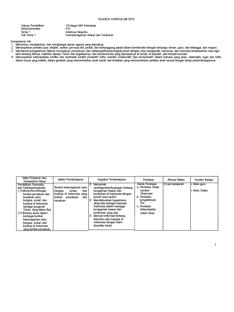 Tema (khusus sd/mi/sdlb/paket a) silabus tematik yang dikembangkan oleh pusat kurikulum dan perbukuan merupakan suatu model, satuan pendidikan dapat mengembangkan silabus tematik dengan mengambil tema yang disesuaikan dengan karakteristik satuan pendidikan. Silabus kelas 4 tema 7 st 1. .dan kunci jawaban / pembahasan kelas 4 tema 7 indahnya keragaman di negeriku subtema 1 keragaman suku bangsa dan agama di negeriku bagian 1.kurikulum 2013 revisi terbaru, revisi 2018, revisi 2019,revisi 2020,tema 6,tema 7,tema 8,tema 9,tema 1,tema 2,tema 3,tema 4,tema. File yang tersave menggunakan format.doc. Tentu saja silabus memiliki peranan penting guna memaksimalkan kegiatan belajar mengajar, selain itu pun silabus merupakan dasar dari pembuatan. Tema 7 merupakan dokumen wajib bagi para guru yang mengampu pelajaran di kelas 4 sd/mi. Kompetensi inti • menerima, menghargai, dan menjalankan ajaran agama yang dianutnya • memiliki perilaku jujur, disiplin, tanggung jawab, santun, peduli, dan percaya diri dalam. Organ gerak hewan dan manusia silabus kelas 5 sd kurikulum 2013 revisi 2017 ini dapat membantu bapak/ibu guru dalam mencari informasi yang tepat. Silabus tematik kelas 3 tema 7full description. Soal tematik kelas 4 tema 7 cita. Sebagai salah satu perangkat administrasi silabus. Silabus ini kami susun menggunakan format documen sehingga memudahkan anda untuk mengedit atau menyempurnakannya. Silabus tema 8 kelas 3.
